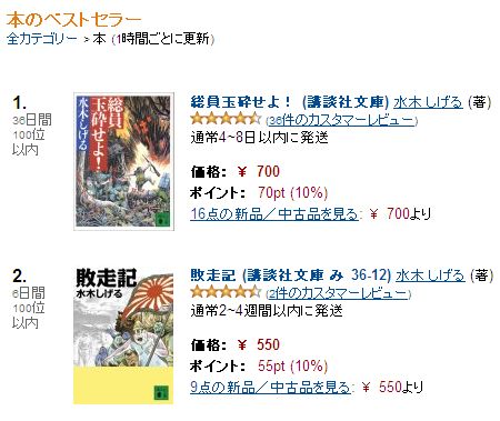 水木しげるの戦記漫画がアマゾン書籍ランキング1位、2位に :にゅーあきばどっとこむ