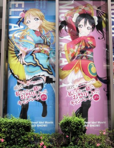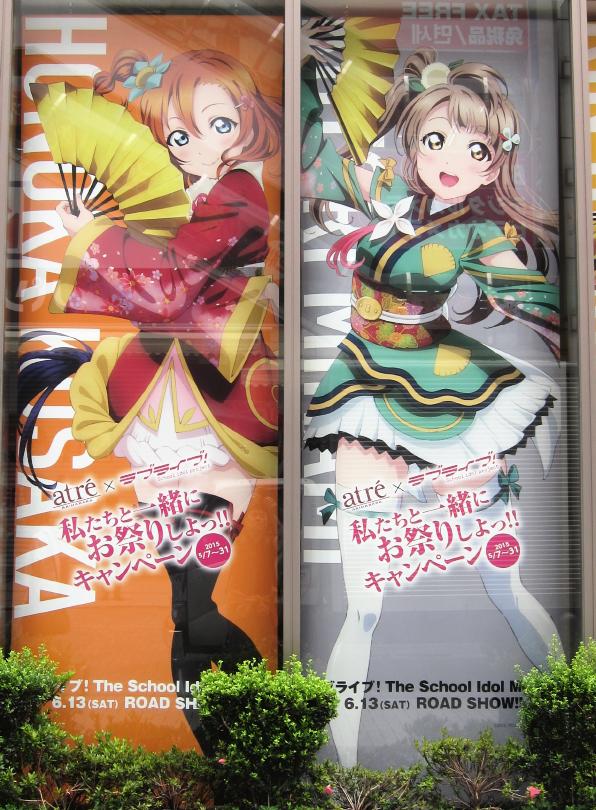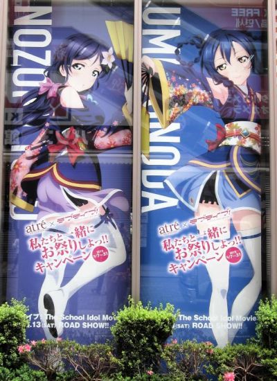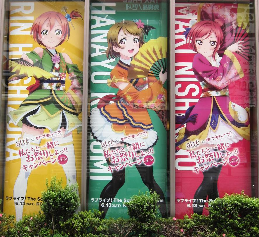 In May 2015, there were large posters of the Love Live characters in the windows of Atre Akihabara.