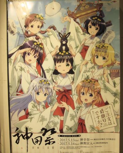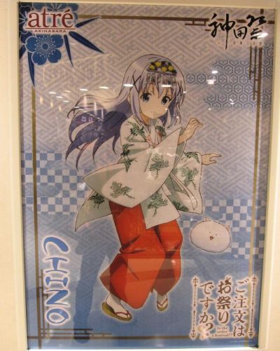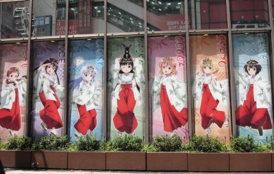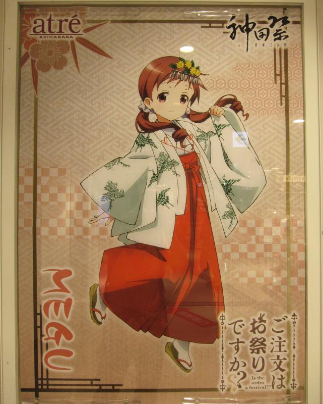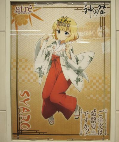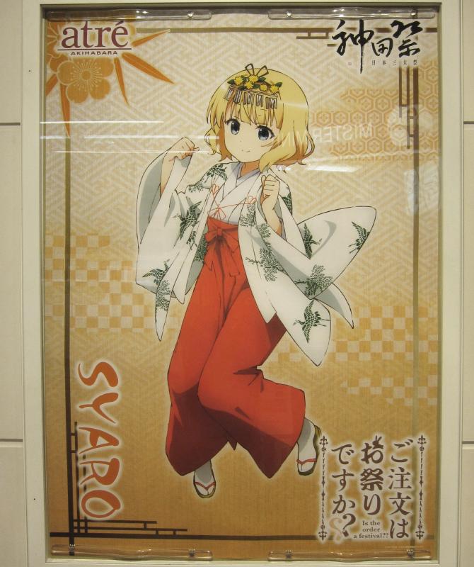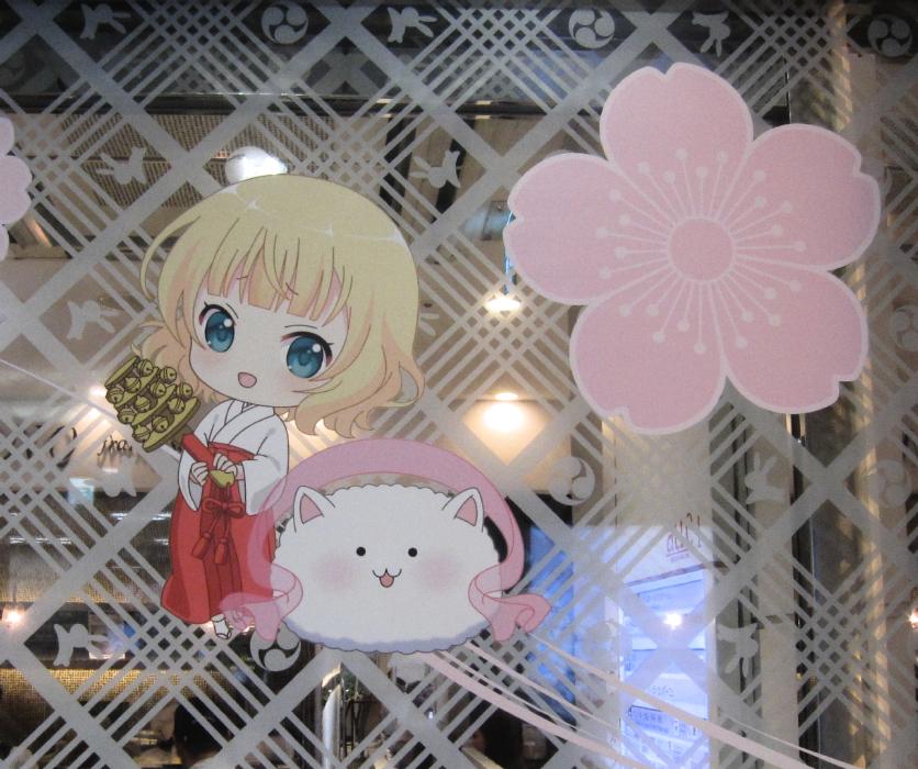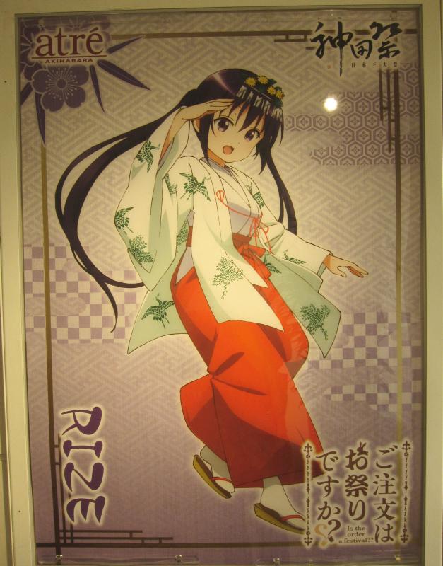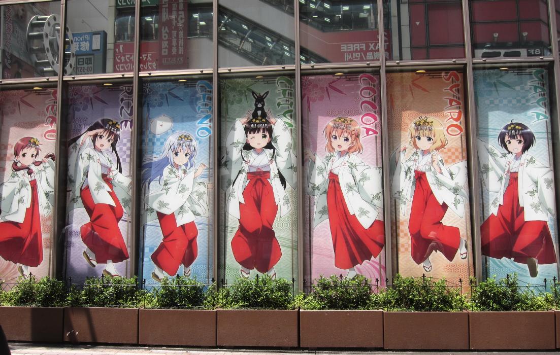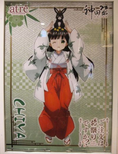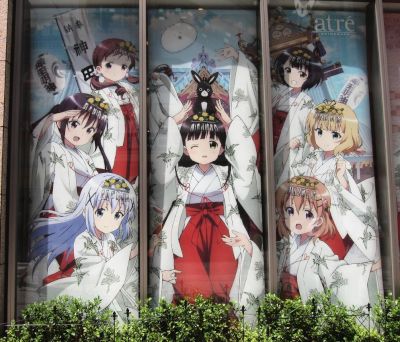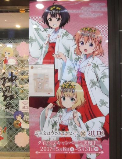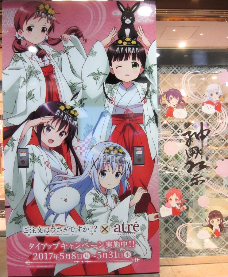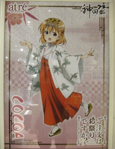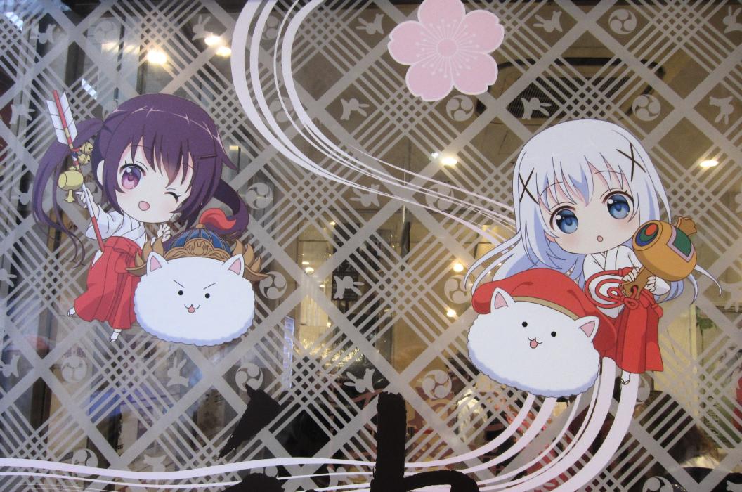 There were large posters in the store side windows of the Gochi Usa characters wearing miko outfits.
