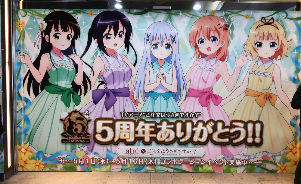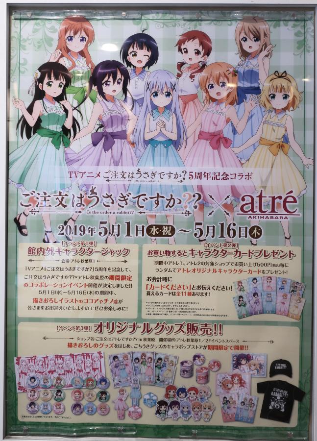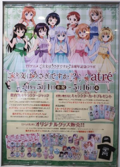 In May 2019, there was a collaboration at Atre Akihabara for the 5th anniversary of the TV anime Gochuumon ha Usagi Desuka?