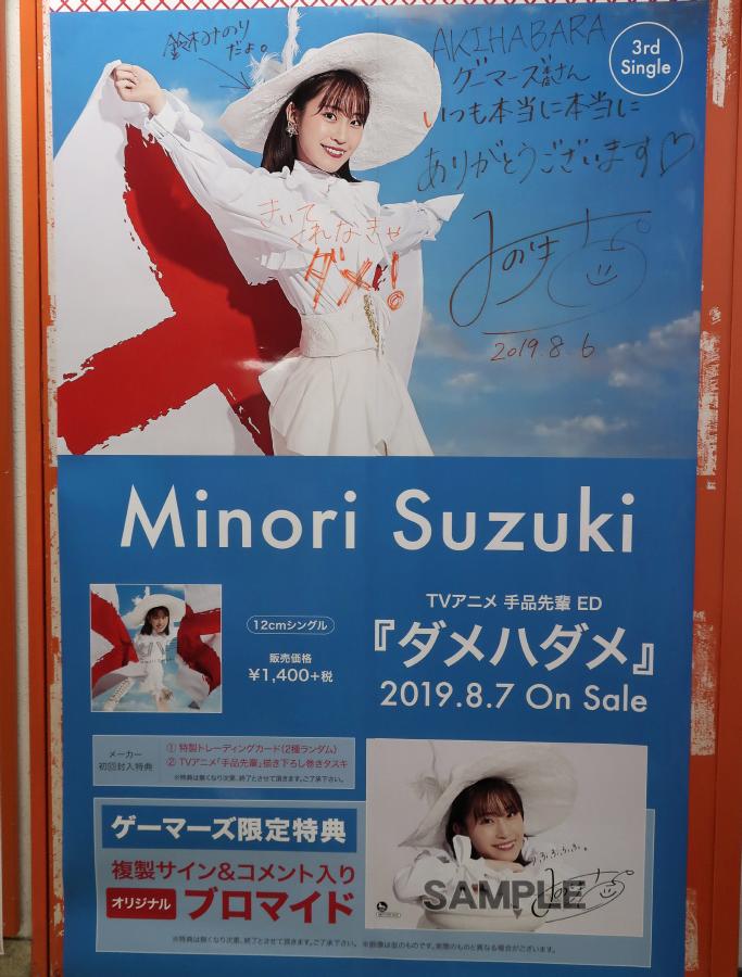 In August 2019, there were displays at Gamers for the latest single by Suzuki Minori.