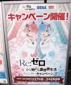 Between January 27 and February 25, 2018, there was a campaign at the Sega Game Centers for Re:Zero kara Hajimeru Isekai Seikatsu.