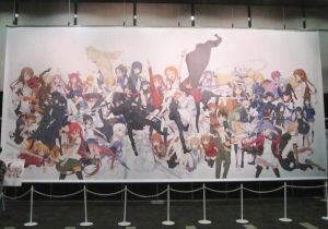 There was a very large tapestry with over 50 popular characters from Dengeki stories. They displayed many images and sketches of the anime on the walls, but they didn't allow photos of them.