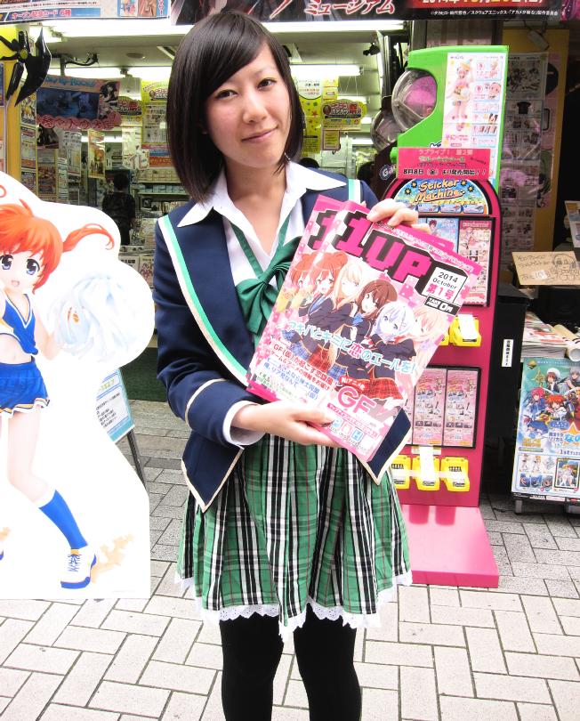 During the weekend of October 11 to 13, there were some cosplayers dressed in a school uniform from Girl Friend (kari) in front of Gamers. They were passing out a new free magazine, 1UP.