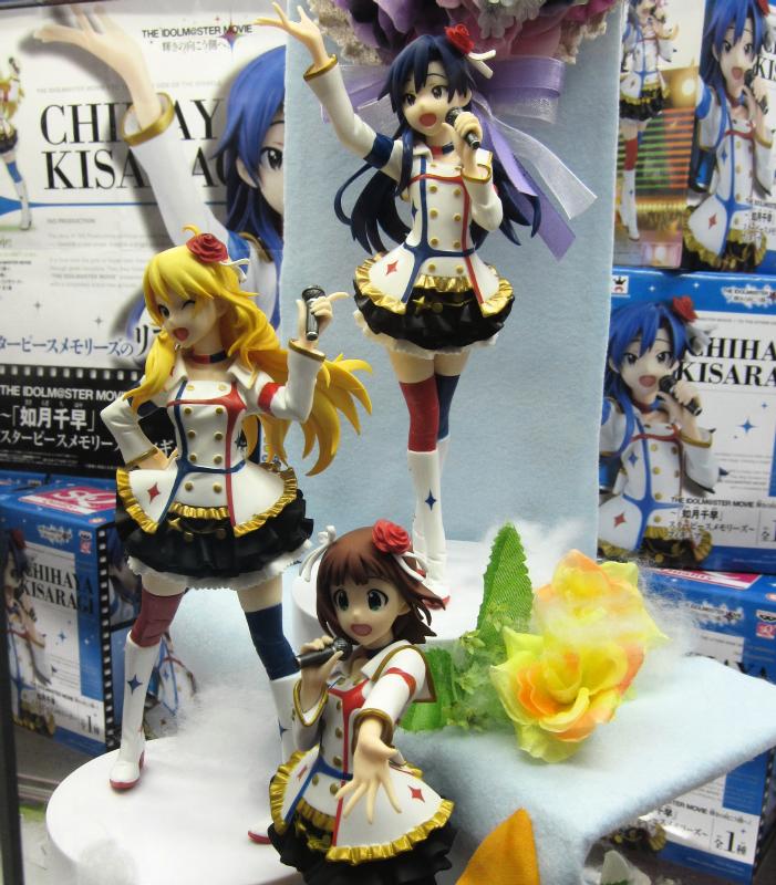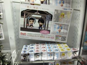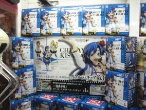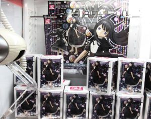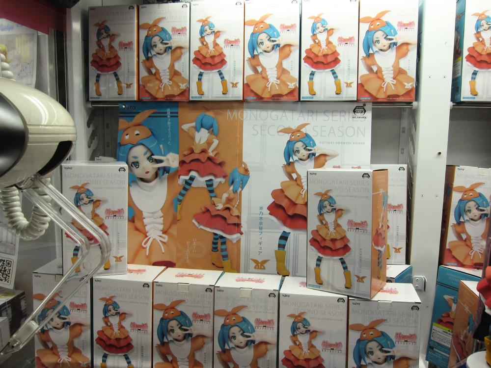 Some of the anime related ufo catcher items that were available in January are as follows: iDOLM@STER figures, Hanayamata figures, Madoka Magica figure, Monogatari figures. There were also catcher goods for Love Live, Sailor Moon, Kantai Collection, and Sword Art Online.