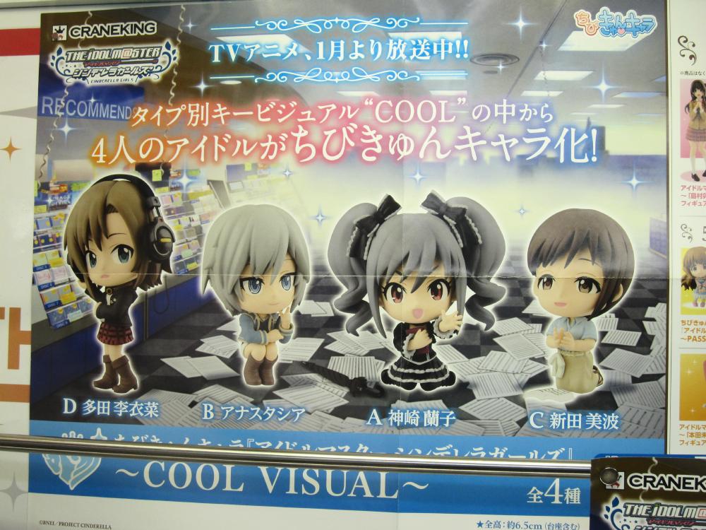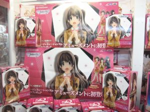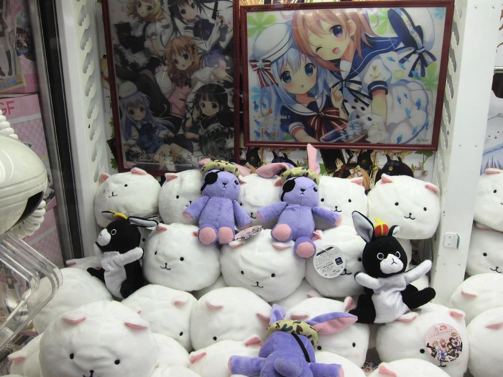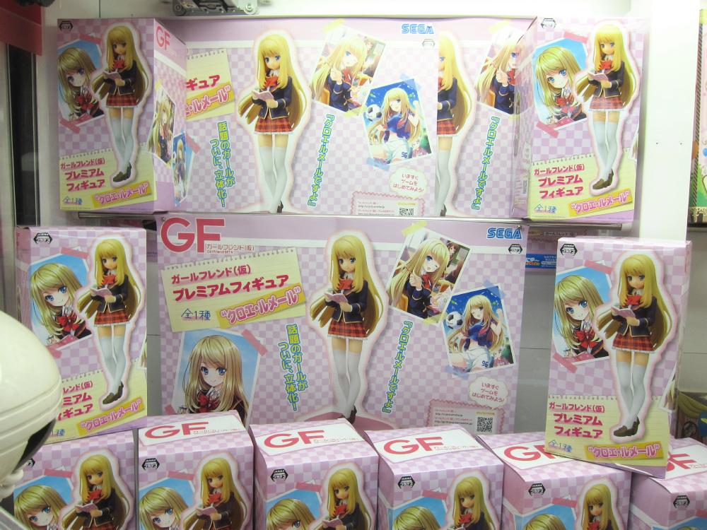 Some of the anime related ufo catcher items that were available in April are as follows: GirlFriend figure, iDOLM@STER figures, Gochi Usa dolls, Yu Yu Yu figure. There were also catcher goods for Sword Art Online, Ore Imo, and Fighting Climax.
