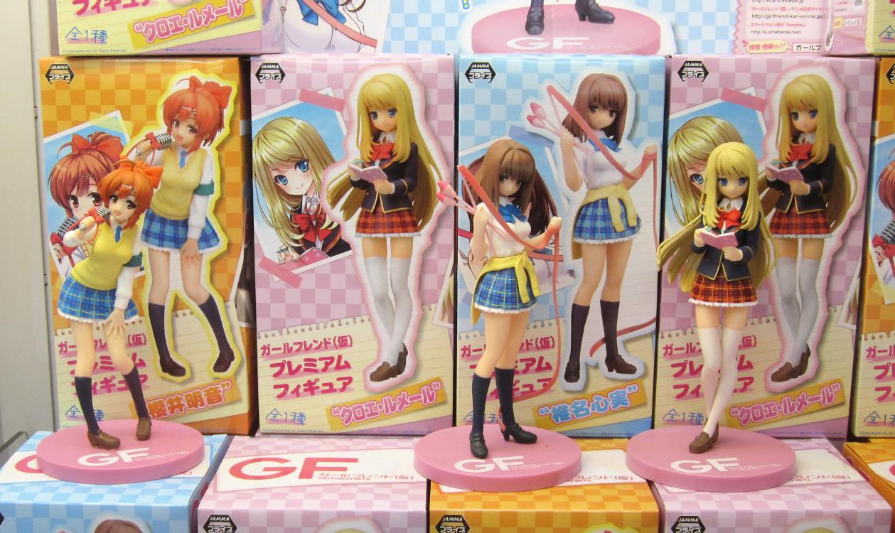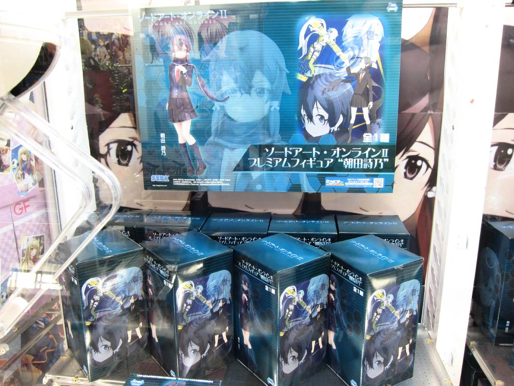Some of the anime related ufo catcher items that were available in June are as follows: GirlFriend figures, Kantai Collection figures, Amagi Brilliant Park figure, Kin-iro Mosaic t-shirt, Sword Art Online figure, Card Captor Sakura figure. There were also catcher goods for Love Live.