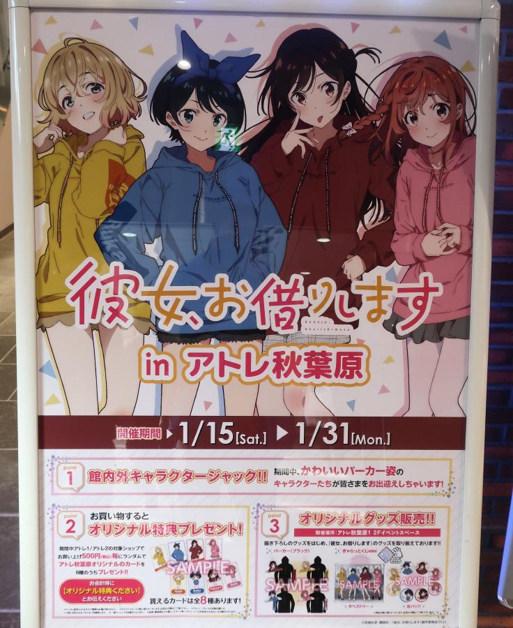 Between January 15 and 31, 2022, there was a collaboration at Atre Akihabara with Kanojo Okarimasu (彼女、お借りします).