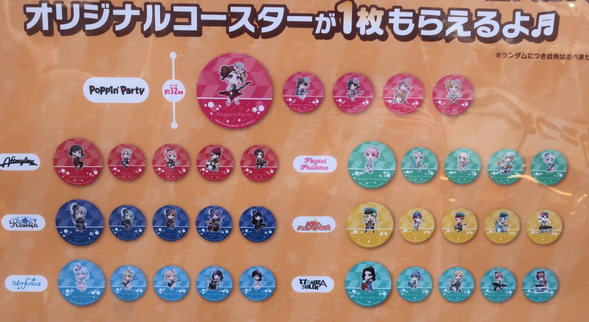 They gave away one of 35 random coasters to those who bought one Bang Dream yaki.