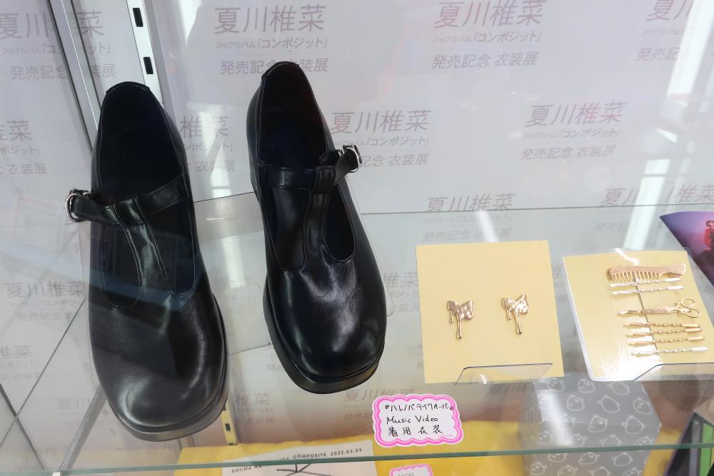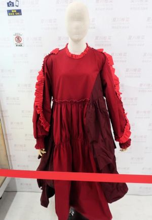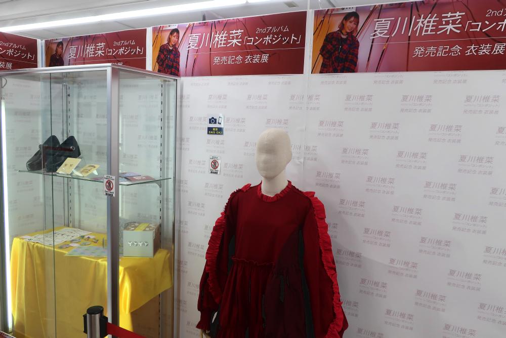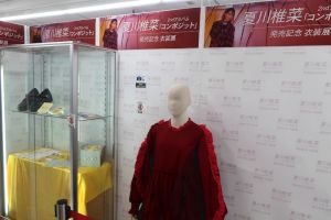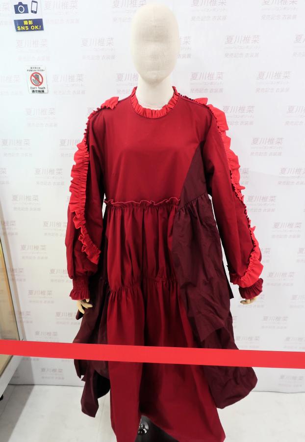 Shiina's red dress, shoes, and hair accessories were on display.
