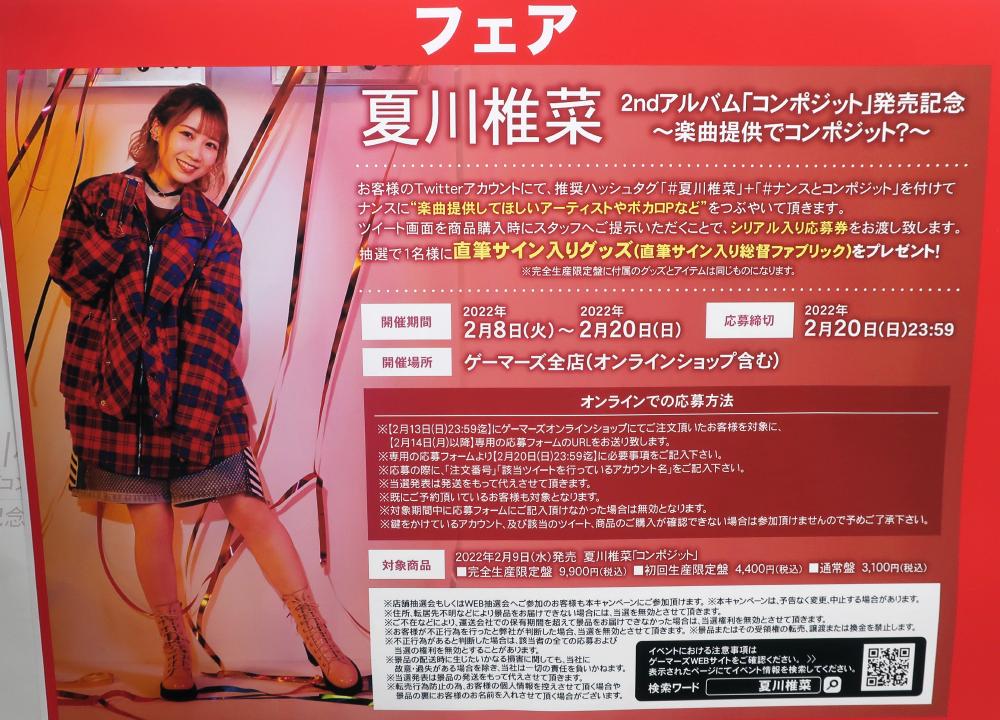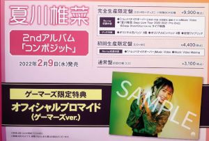 Between February 8 and 20, 2022, there was a mini exhibit at Gamers for the latest album by Natsukawa Shiina.