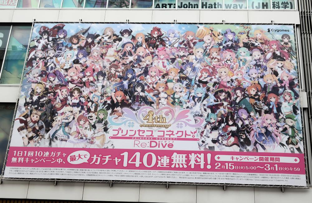 In February 2022, there were large advertisements at JR Akihabara Station and Radio Kaikan for the Princess Connect Re:Dive 4th Anniversary.